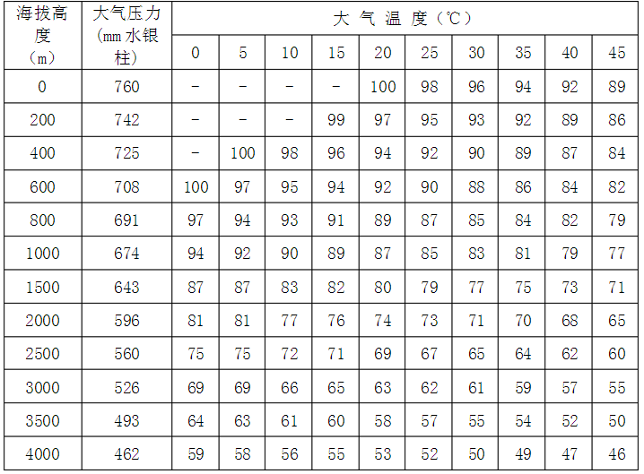 2、如果外界氣壓、氣溫、濕度等上述標準情況下,則應按下列附表中所列的修正系數加以修正,即實際功率應等于標準乘以修正系數c。下列兩表分別為50%及100%相對濕度下各種氣、氣溫情況的修正系數c如溫度為其他數值時,可利用插入法根據此二表計算出相應的修正系數。
